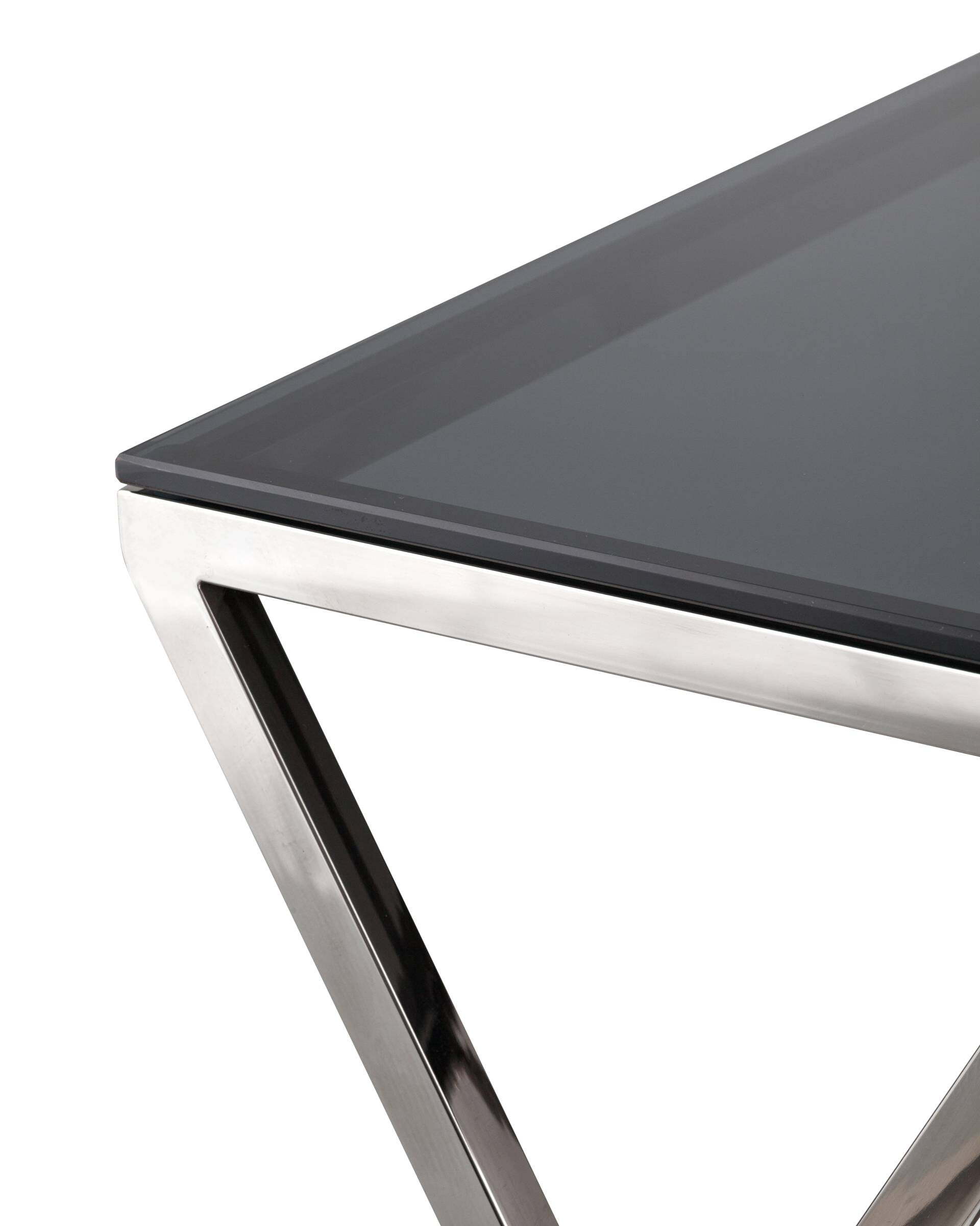 Журнальный стол "Insigniya" - это элегантное и стильное дополнение к интерьеру любой комнаты. Он имеет практичный дизайн и изысканный внешний вид. Стол имеет квадратную форму и изготовлен из качественной стали темного хрома, а верхняя поверхность из закаленного стекла с эффектом "дымчатого" цвета. Стол имеет прочную конструкцию, а также практичные откидные детали для большего удобства. Этот стол будет прекрасным дополнением к вашему дому.