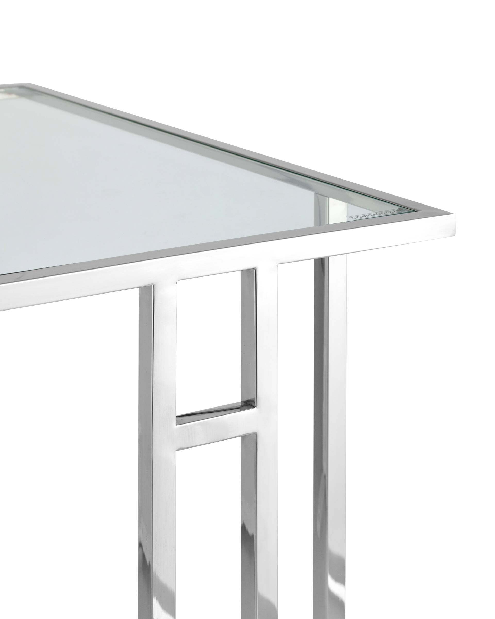 Журнальный столик Boston – это идеальное решение для Вашего дома. Он имеет простой и стильный дизайн, который прекрасно дополнит любой интерьер. Столик выполнен из прозрачного стекла и серебристой стали, благодаря чему он отлично впишется в любое пространство. Столик имеет практичные размеры 50 х 32 см, поэтому он поместится в любую комнату. Он прекрасно подойдет для приема гостей или для хранения книг и других полезных вещей. Этот столик представляет собой идеальное решение для дома и офиса.