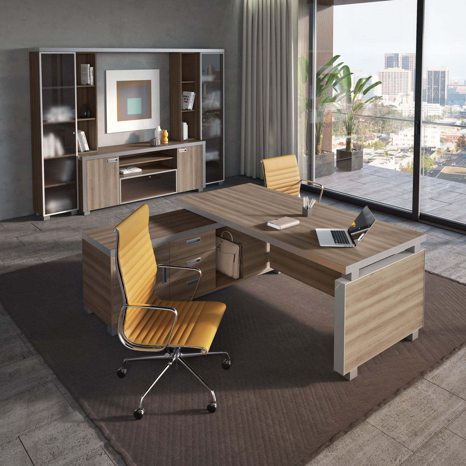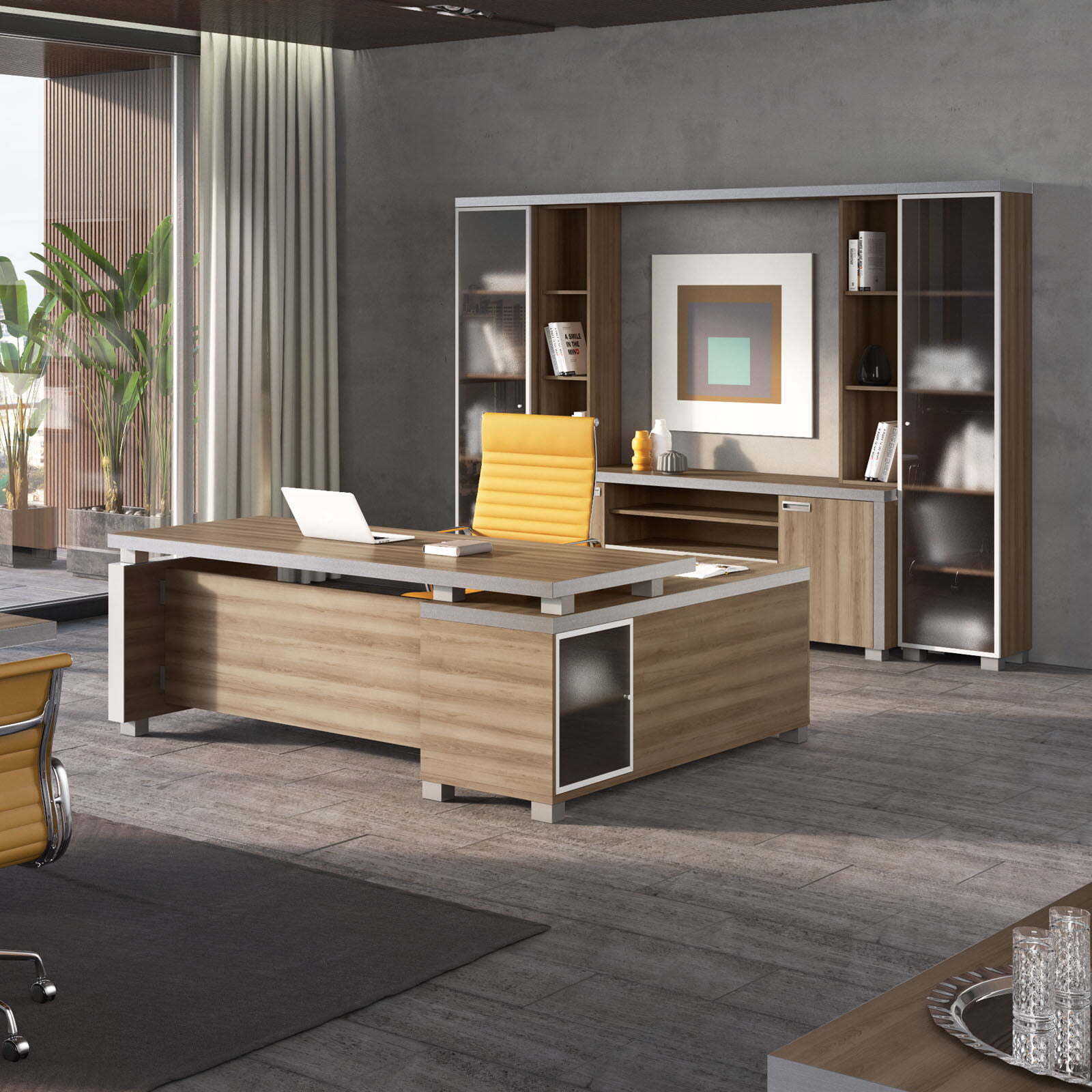 Коллекция мебели Emporio идеально подходит для оформления главного помещения офиса в современном стиле.