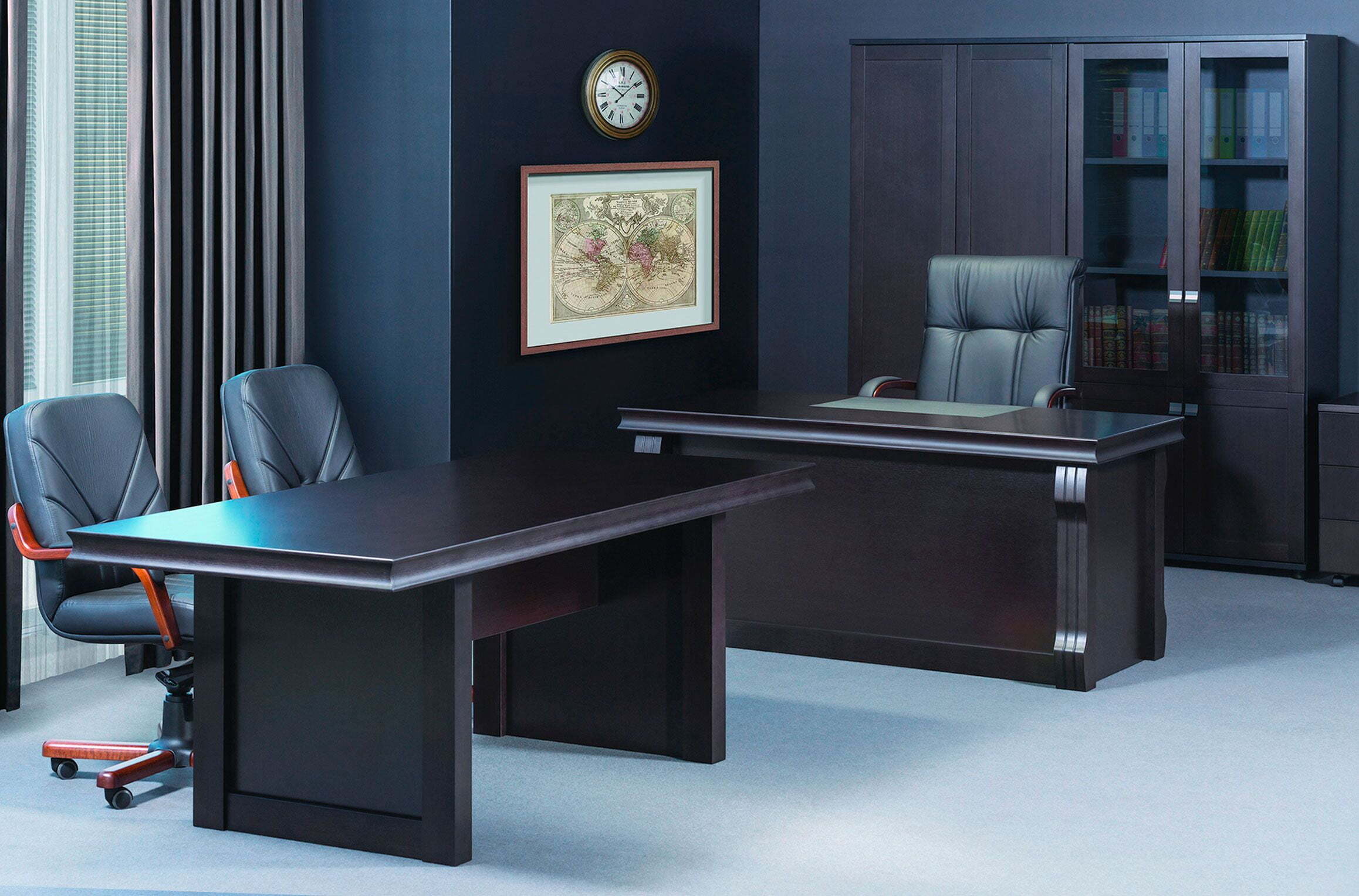 Эта мебель выгодно дополняет имидж солидного руководителя. Добротные материалы: шпон, МДФ, кромки из массива, безупречный дизайн и высокая функциональность - все это позволяет достичь максимального уровня комфорта. Работать за мебелью Lion удобно и приятно.