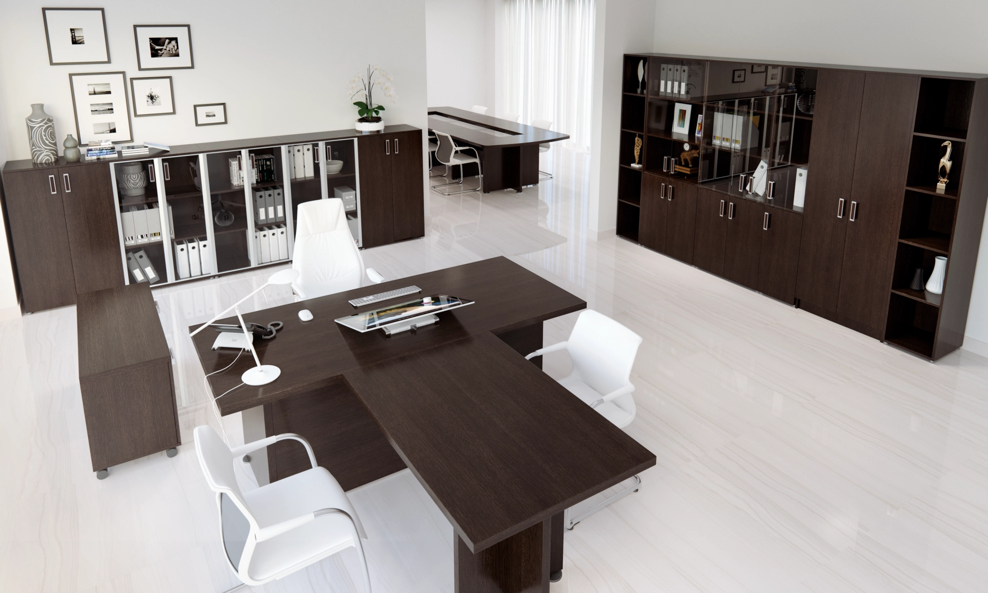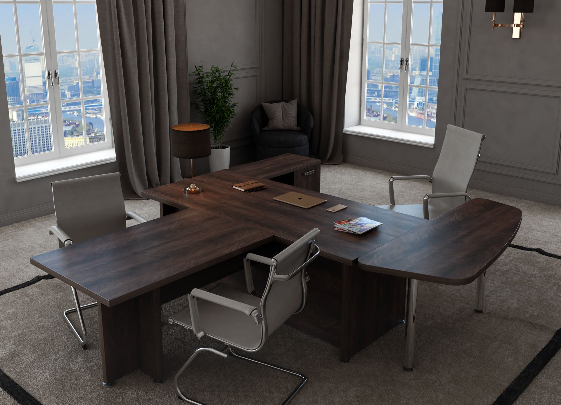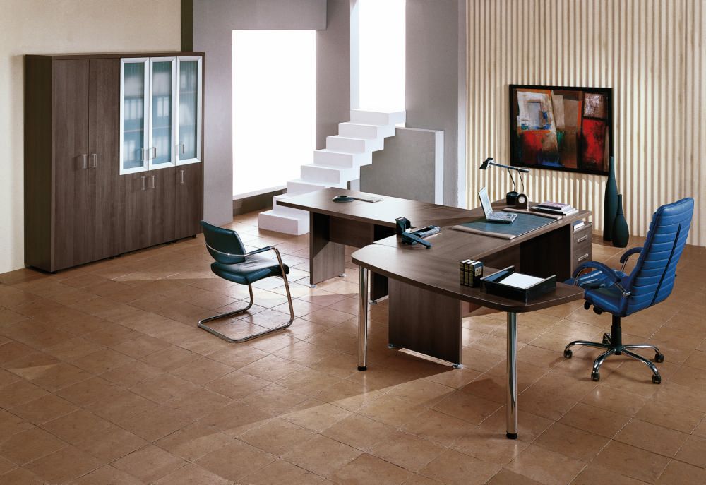 Коллекция мебели Приоритет - это элегантный и привлекательный в манере исполнения кабинет руководителя. Все элементы прекрасно дополняют друг друга, одновременно не ограничивая полет фантазии в их расстановке. Современный дизайн в стиле модерн словно переносит в кабинет руководителя динамичность и основные тенденции современного бизнеса. Мебель привлекательная еще и тем, что для установки не требуется идеальной гладкости поверхности. Причина проста – все опоры у столов и шкафов можно регулировать, тем самым выравнивая рабочую поверхность мебельного гарнитура.