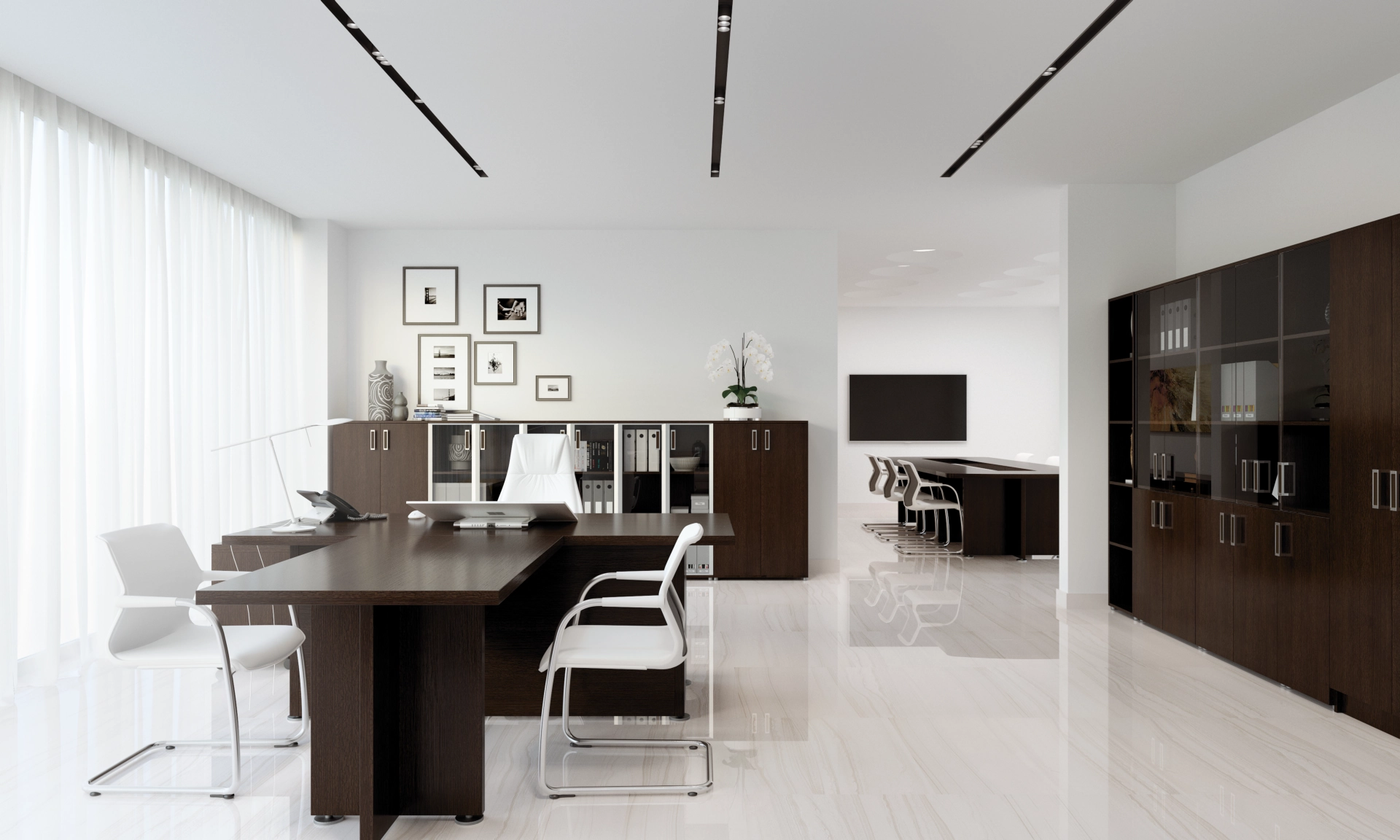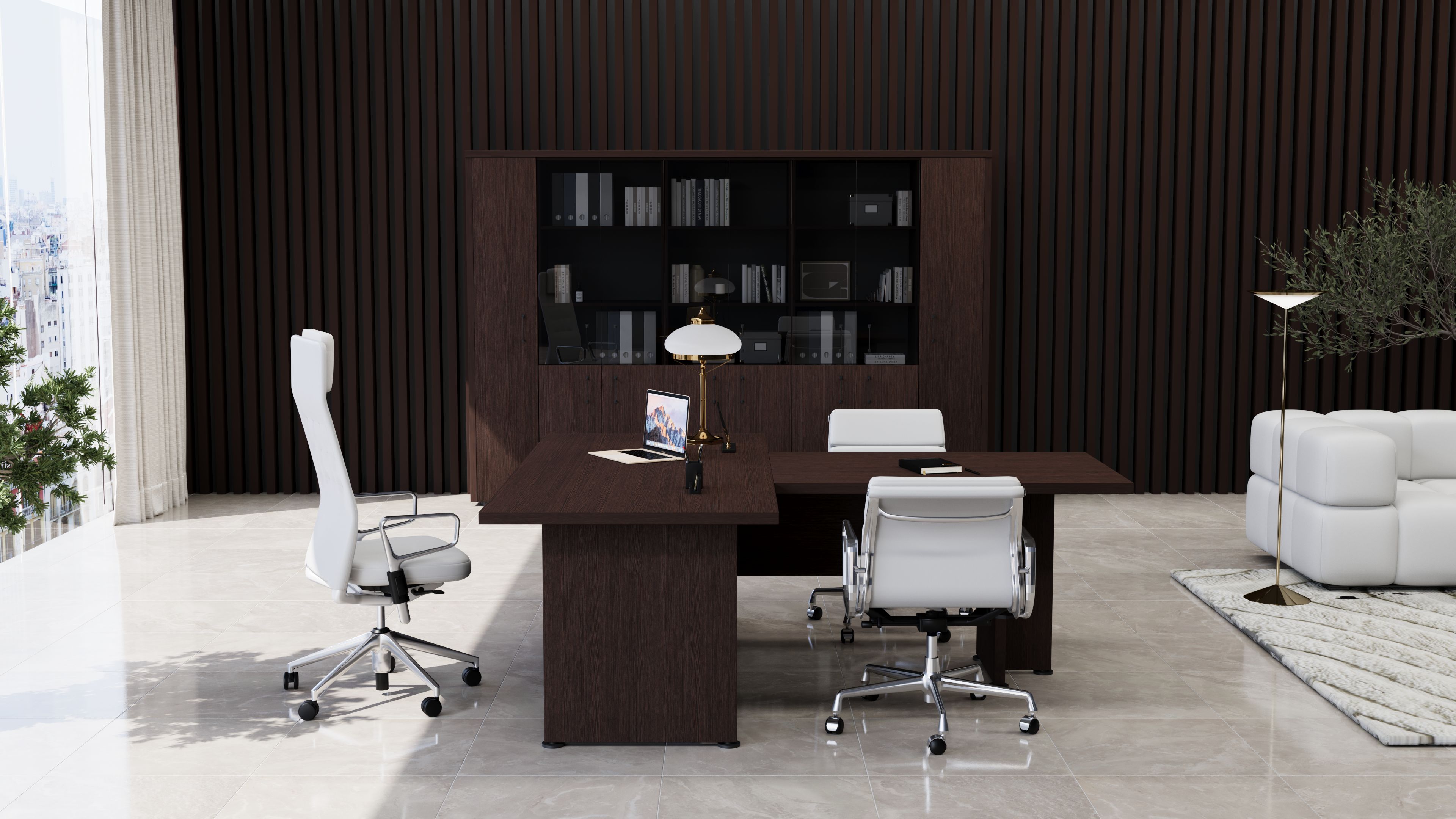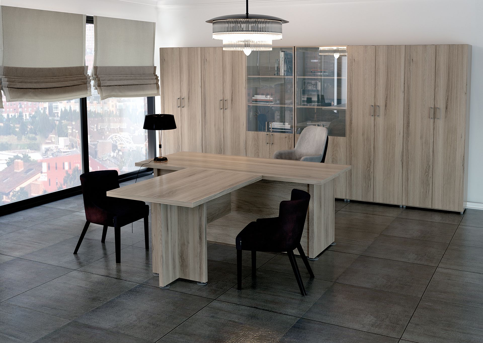 Коллекция мебели Приоритет - это элегантный и привлекательный в манере исполнения кабинет руководителя. Все элементы прекрасно дополняют друг друга, одновременно не ограничивая полет фантазии в их расстановке. Современный дизайн в стиле модерн словно переносит в кабинет руководителя динамичность и основные тенденции современного бизнеса. Мебель привлекательная еще и тем, что для установки не требуется идеальной гладкости поверхности. Причина проста – все опоры у столов и шкафов можно регулировать, тем самым выравнивая рабочую поверхность мебельного гарнитура.