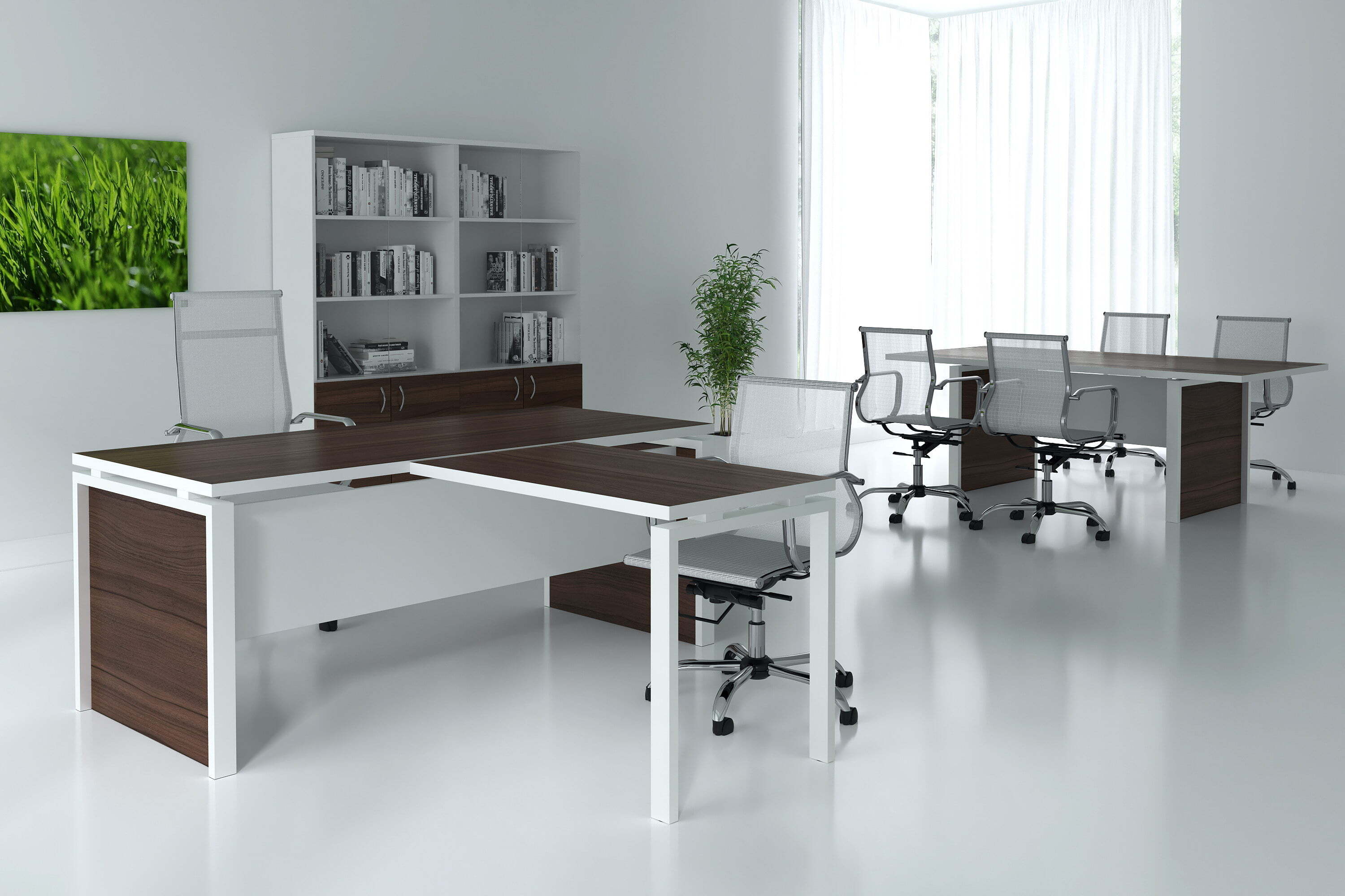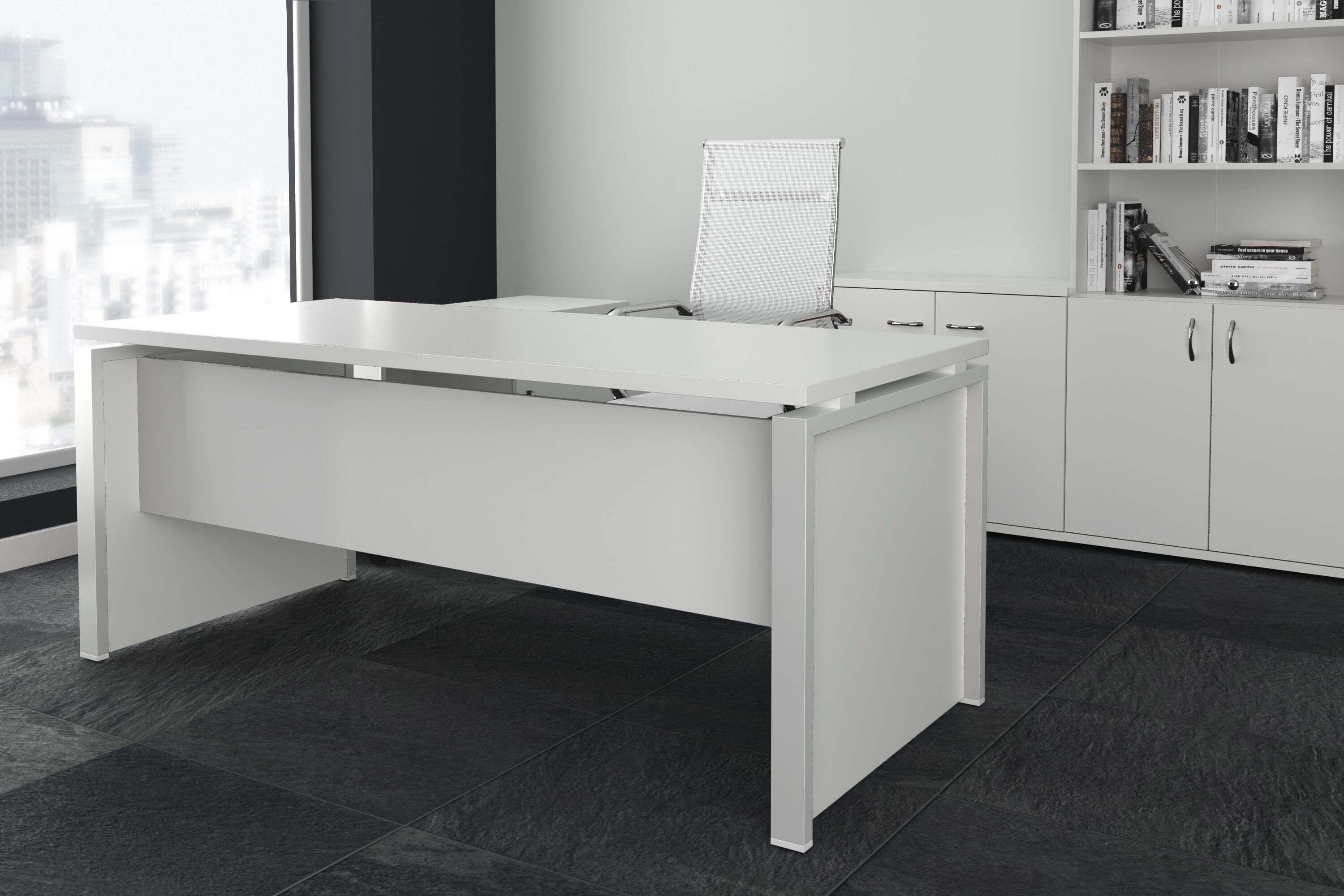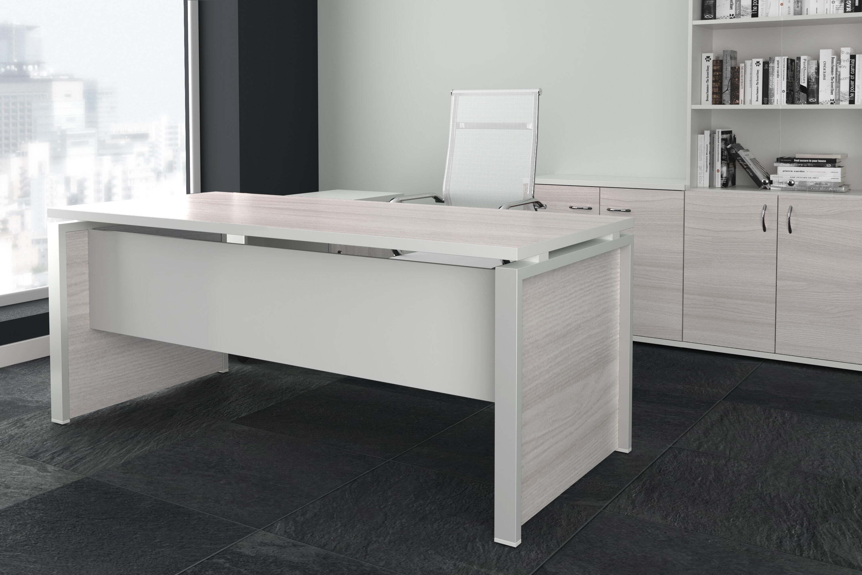 Кабинет "Steel Evo" является примером современного кабинета для руководителя. Элегантный дизайн, строгий внешний вид, качественные материалы и удобство работы - это делает данный кабинет отличным выбором.Столы производятся в материале ЛДСП, толщина столешницы 32мм. Тумбы имеют в своём составе замки.