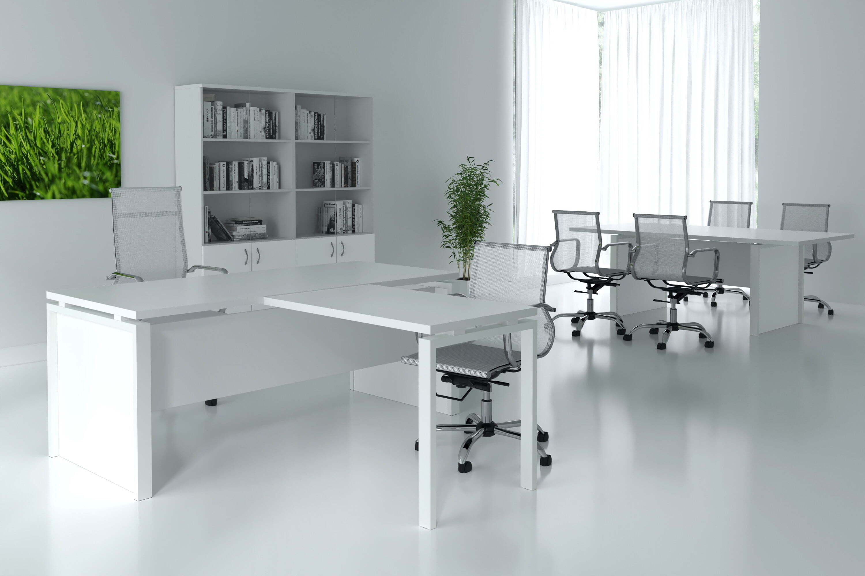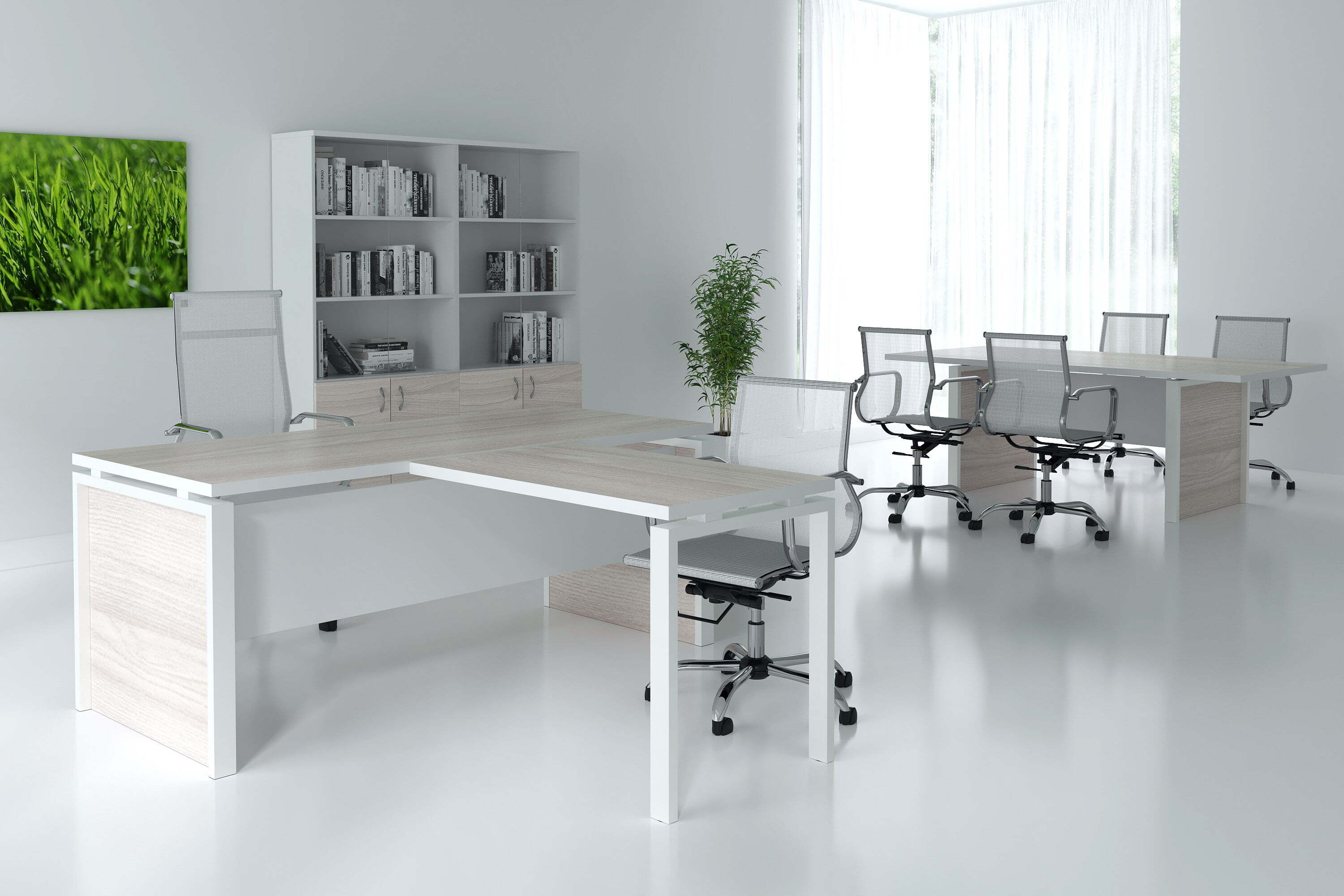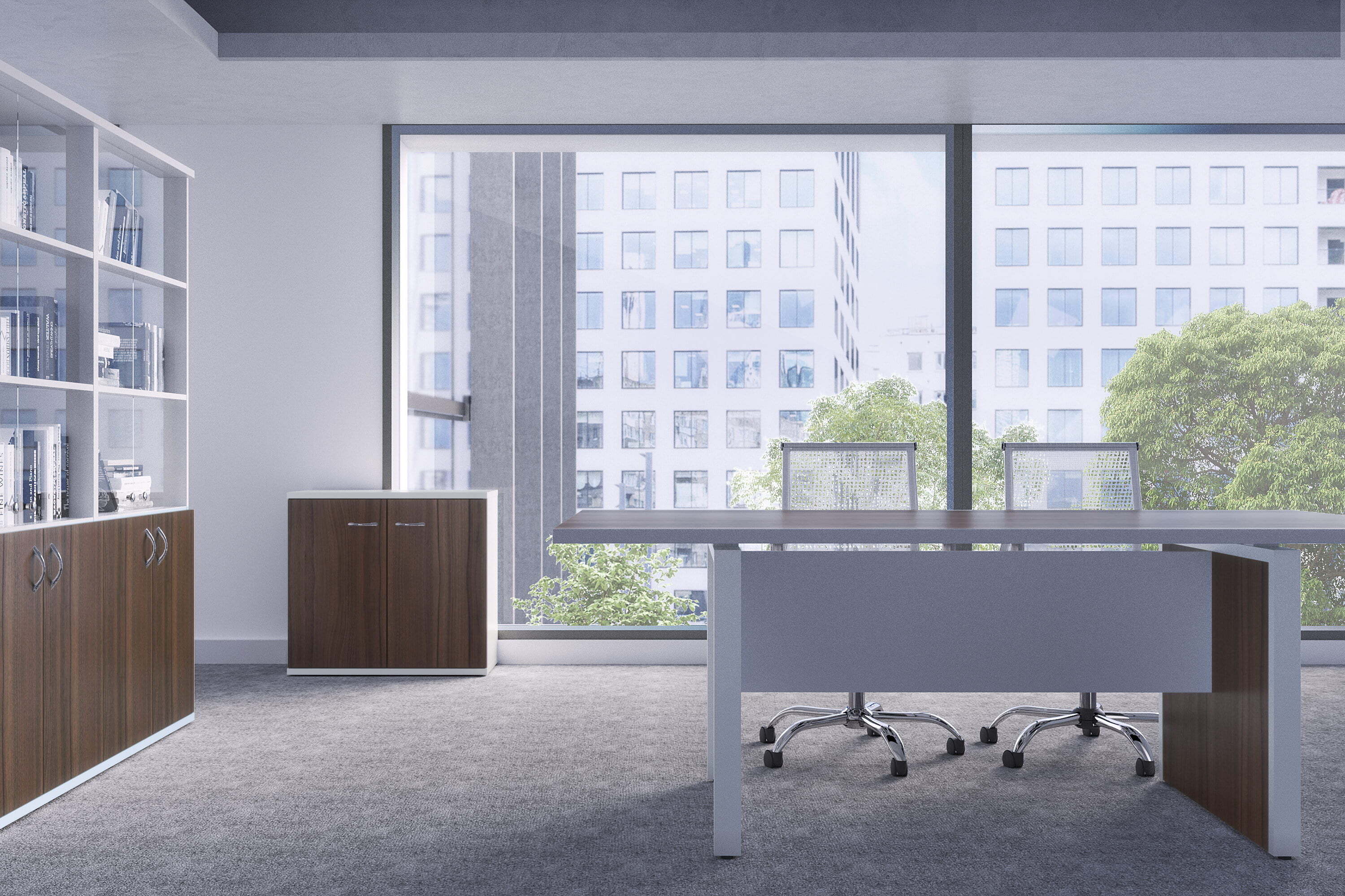 Кабинет "Steel Evo" является примером современного кабинета для руководителя. Элегантный дизайн, строгий внешний вид, качественные материалы и удобство работы - это делает данный кабинет отличным выбором.Столы производятся в материале ЛДСП, толщина столешницы 32мм. Тумбы имеют в своём составе замки.