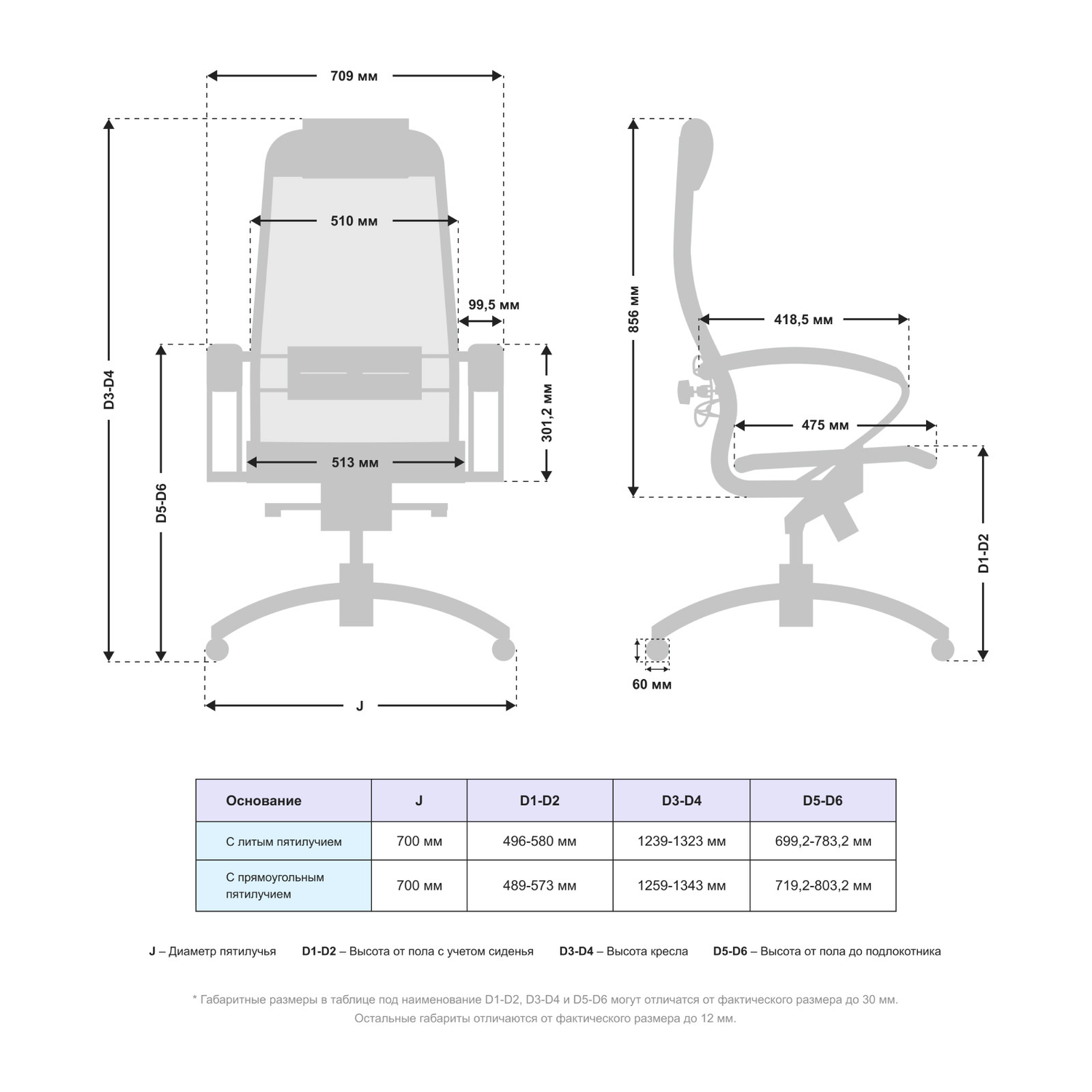 Высота спинки max (мм)