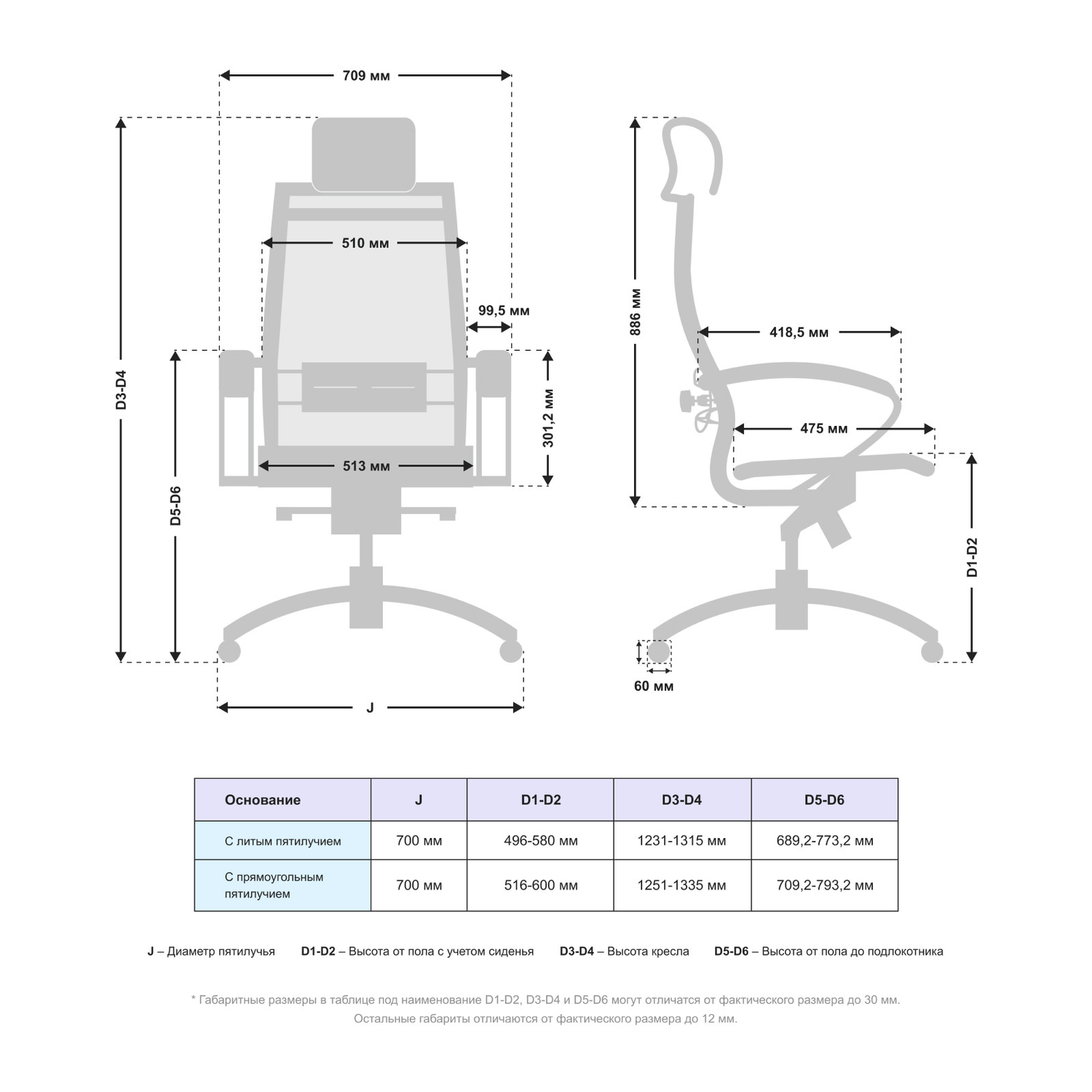 Высота спинки max (мм)