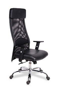 Кресло MG-18 RSJ хром - это красивое и стильное кресло, идеально подходящее для офиса. Оно имеет хромированную металлическую базу и подлокотники, а также мягкое и прочное сиденье и спинку из искусственной кожи в цвете черного. Оно оснащено механизмом качания, а также подставкой для ног и поддержкой для спины, которые улучшают комфорт при сидении. Это кресло дополнит интерьер любого офиса и предоставит максимальный комфорт во время работы.