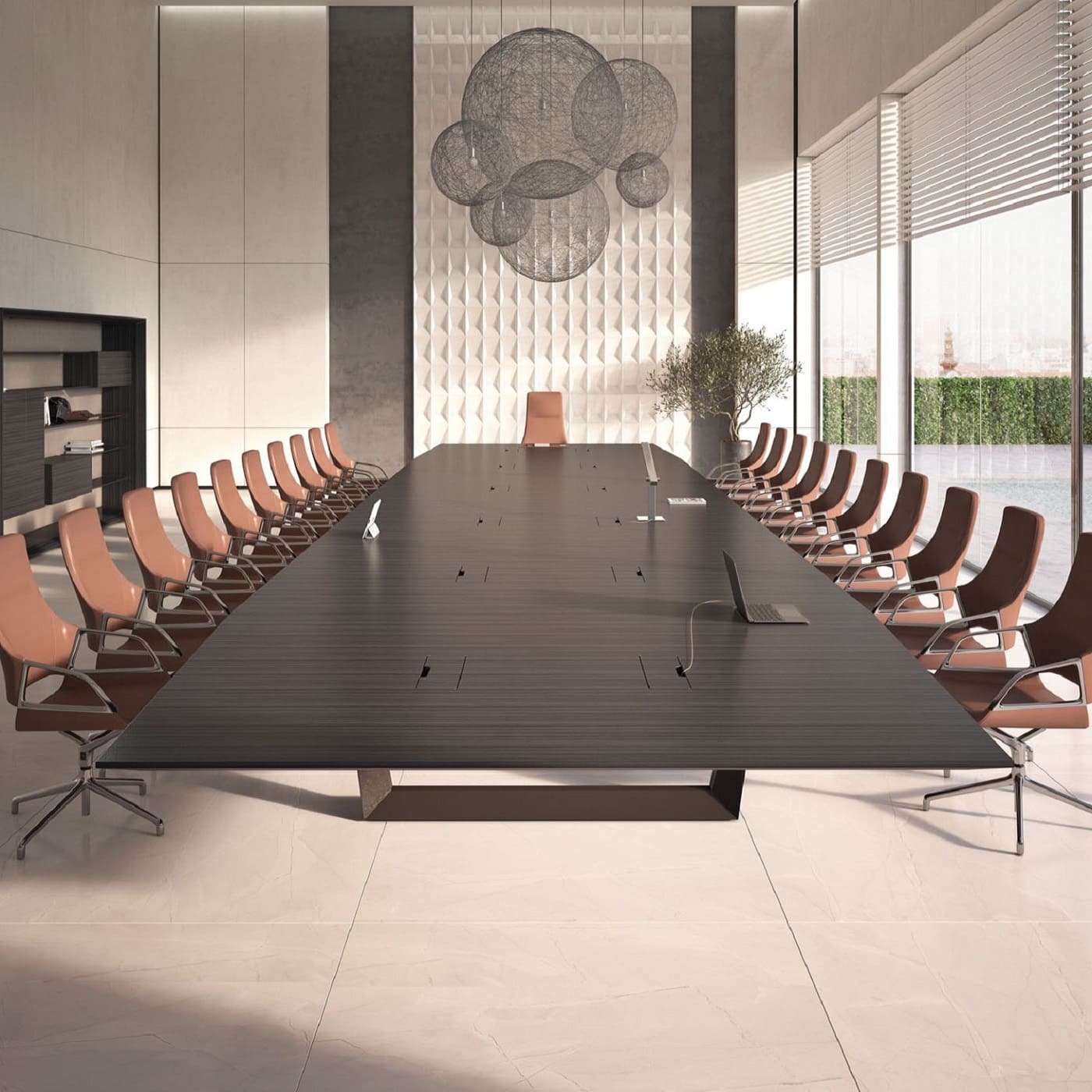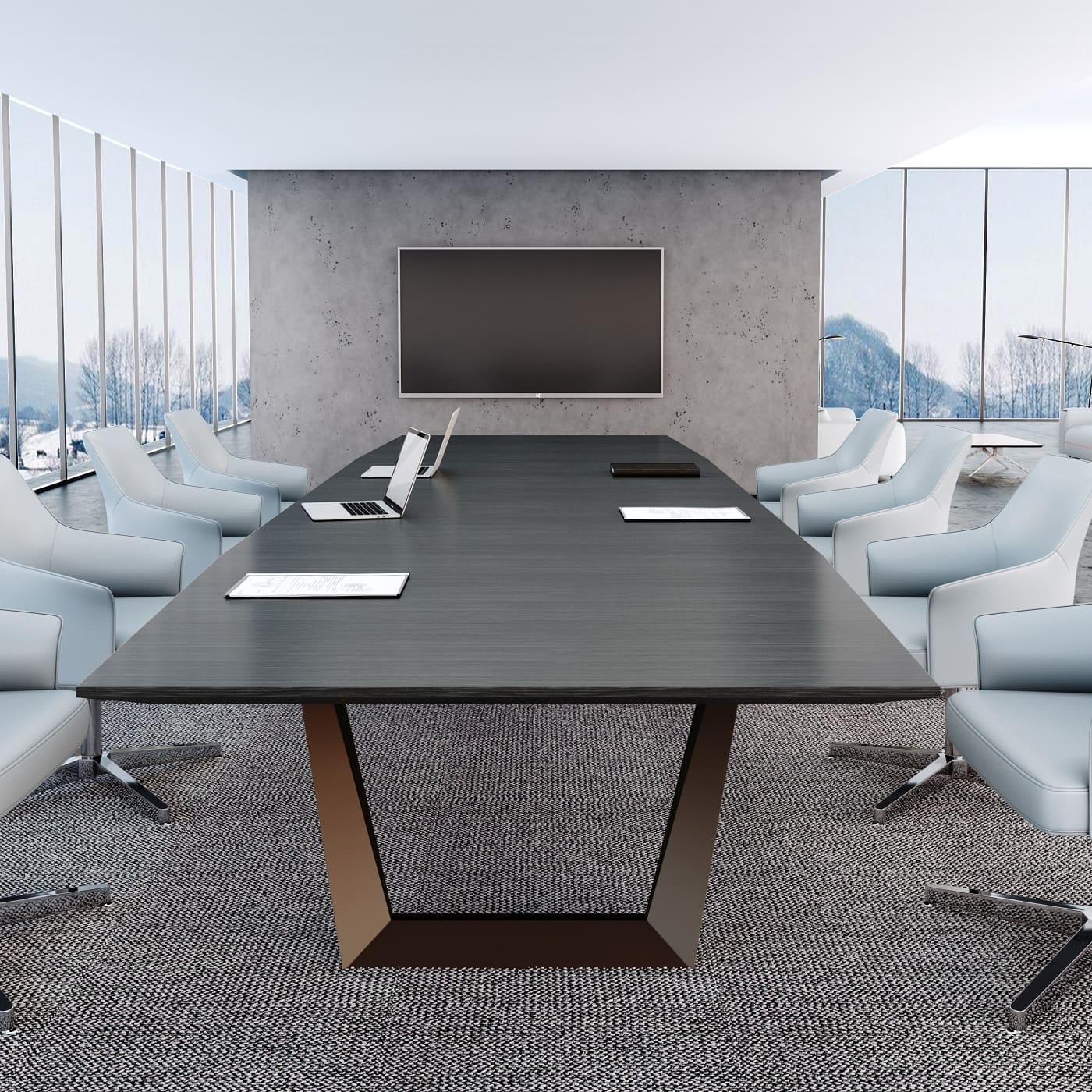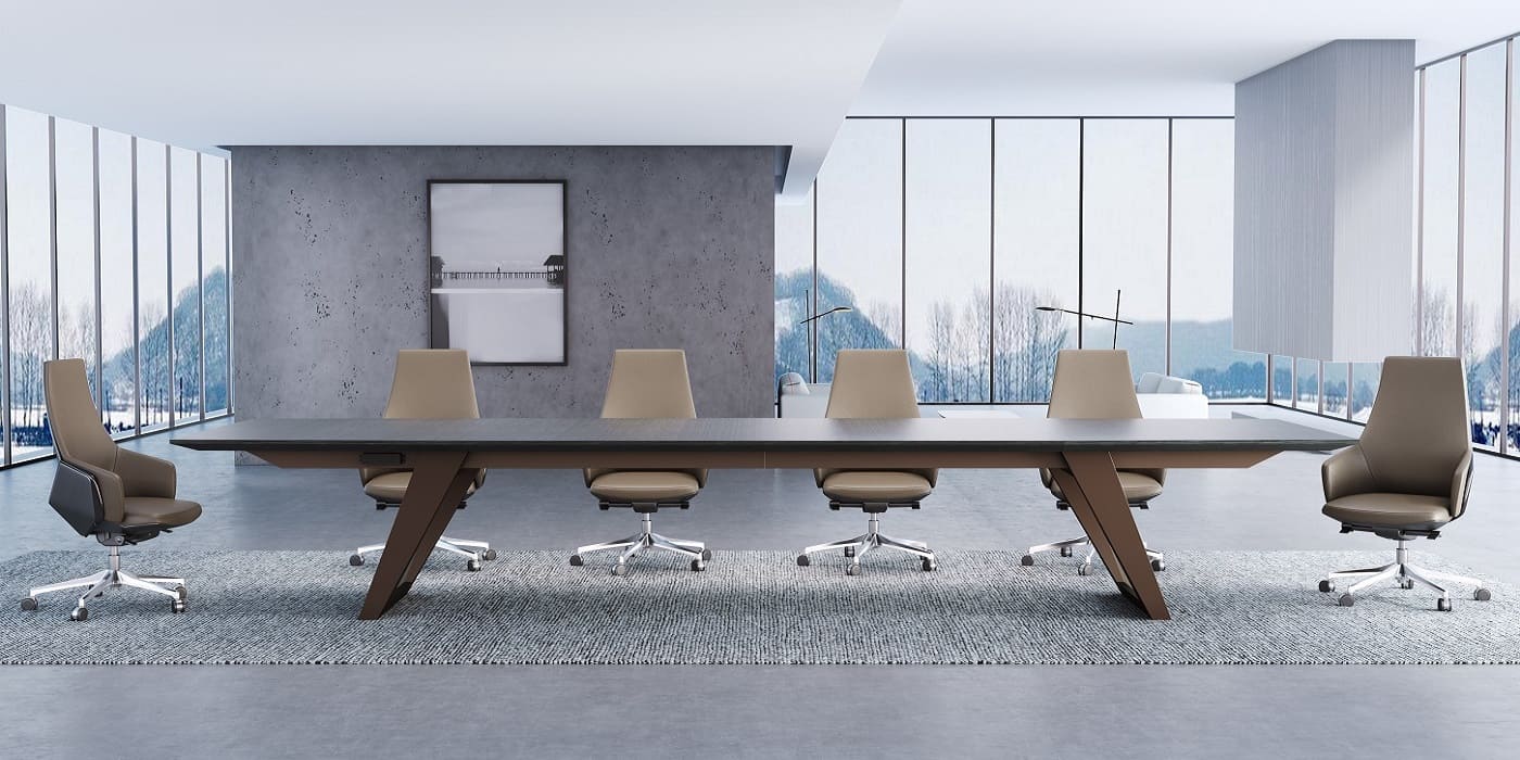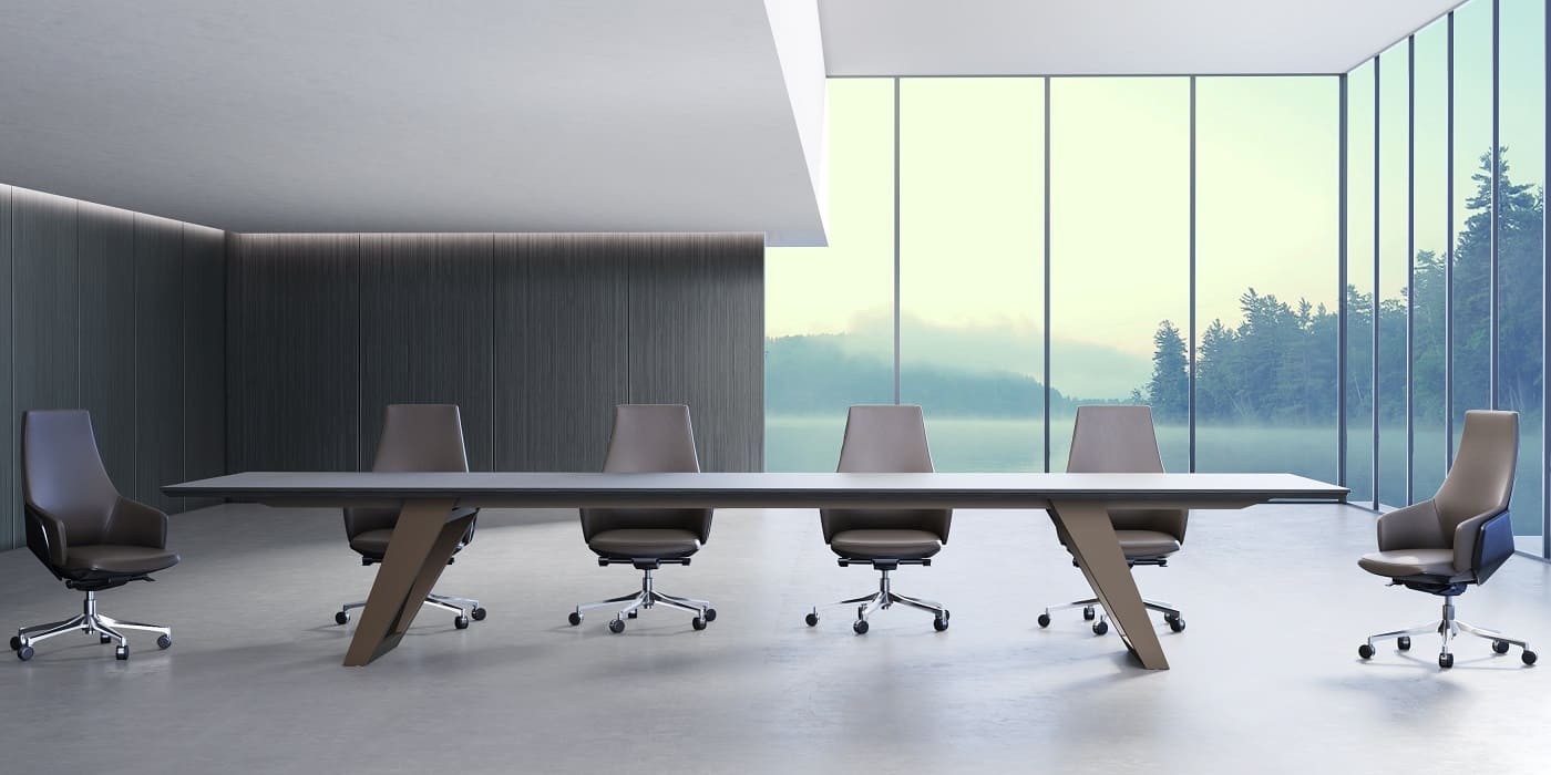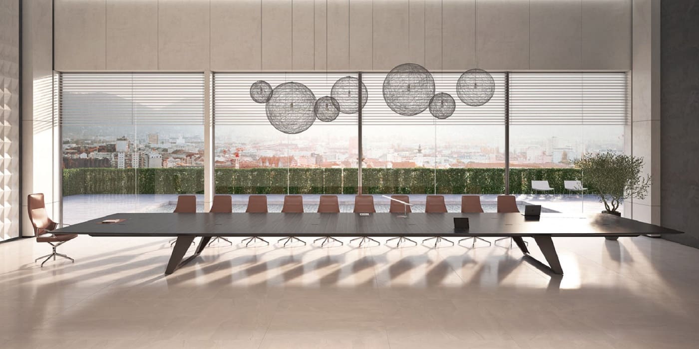 Мебель для переговоров Ducati представляет собой наилучший выбор для создания респектабельной и элегантной зоны переговоров. Изготовленные с применением натурального шпона римского дуба и матового покрытия, столы отличаются укрупненными размерами и великолепными линейными формами. Они придают офису представительность и утонченность. Коллекция включает в себя семь различных вариантов столов для переговоров, длиной 420, 450, 480, 520, 560, 600 см, а также впечатляющий стол длиной почти 10 метров, который прекрасно подойдет для крупных собраний и деловых встреч на самом высшем уровне.