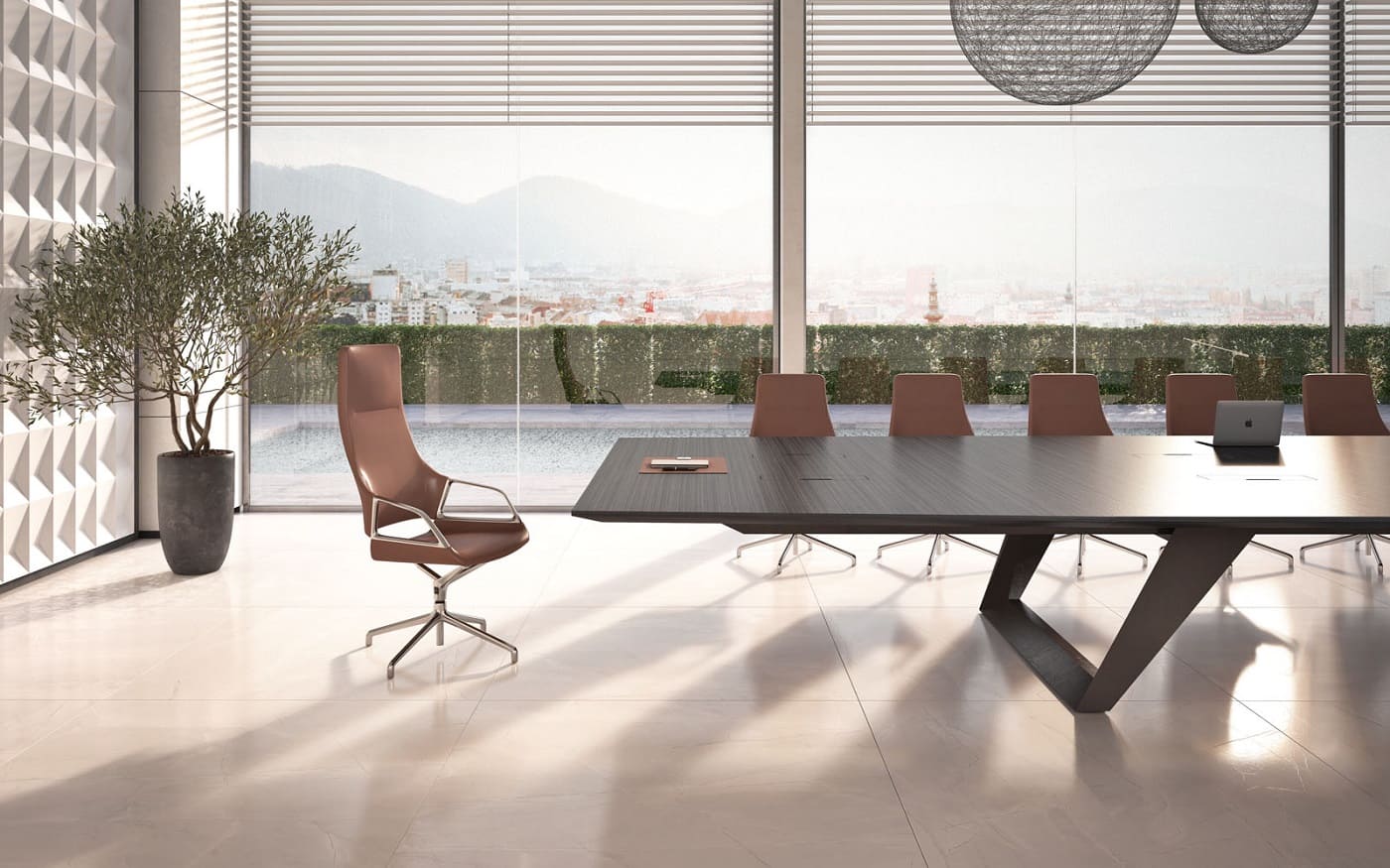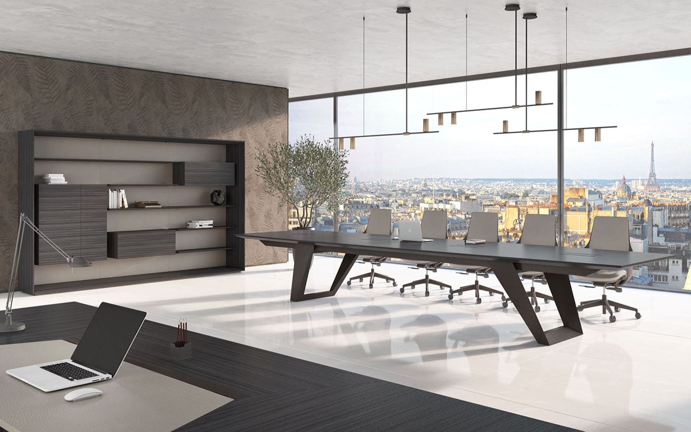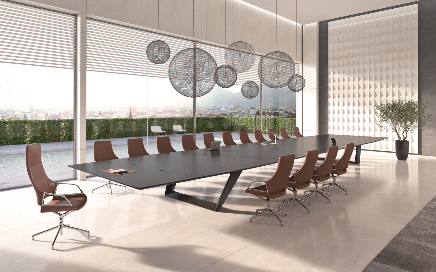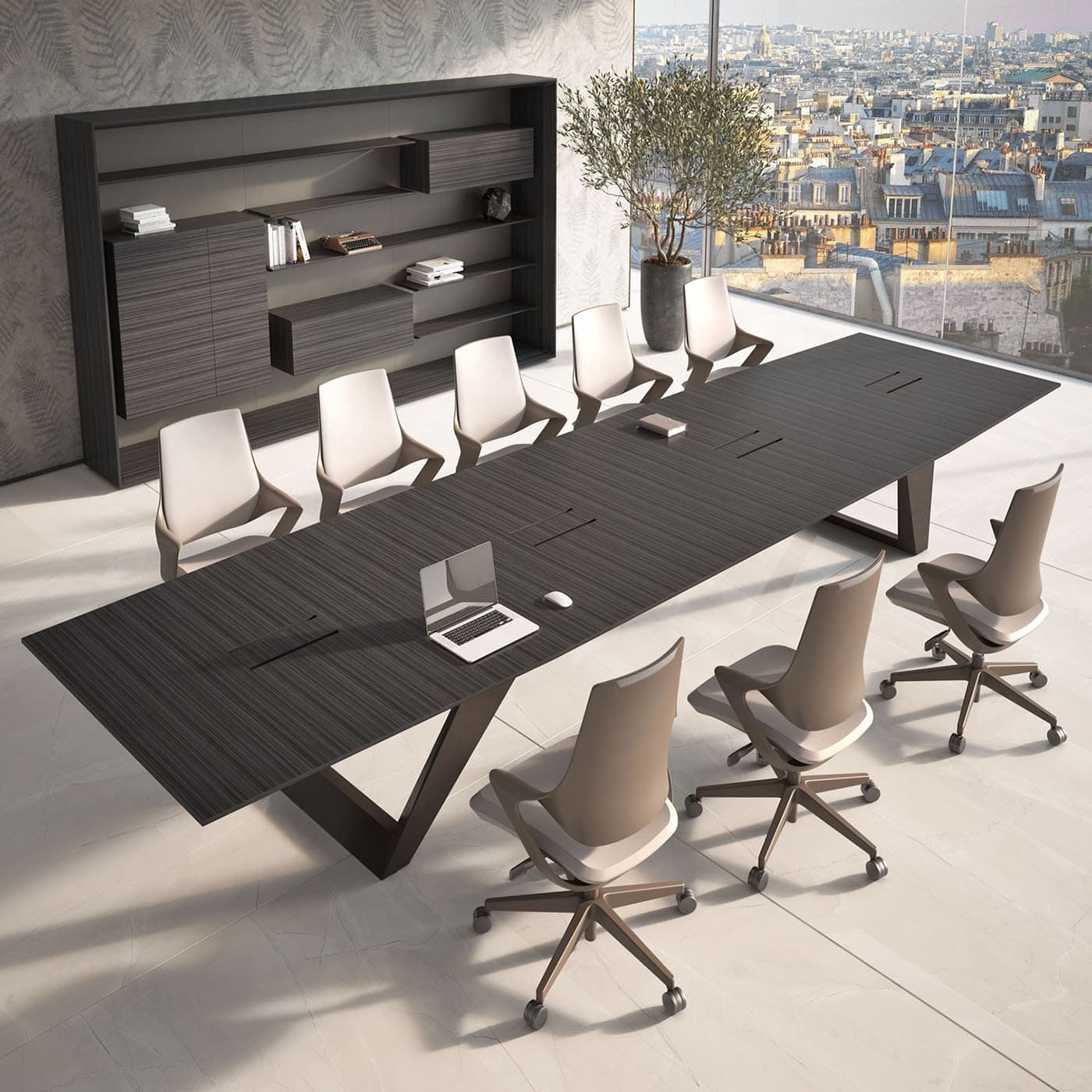 Мебель для переговоров Ducati представляет собой наилучший выбор для создания респектабельной и элегантной зоны переговоров. Изготовленные с применением натурального шпона римского дуба и матового покрытия, столы отличаются укрупненными размерами и великолепными линейными формами. Они придают офису представительность и утонченность. Коллекция включает в себя семь различных вариантов столов для переговоров, длиной 420, 450, 480, 520, 560, 600 см, а также впечатляющий стол длиной почти 10 метров, который прекрасно подойдет для крупных собраний и деловых встреч на самом высшем уровне.