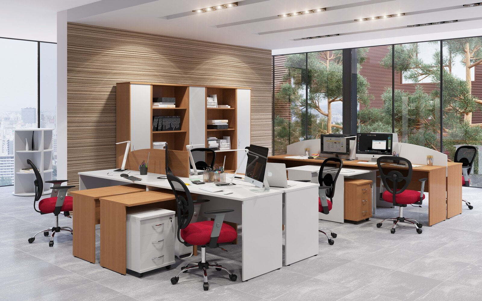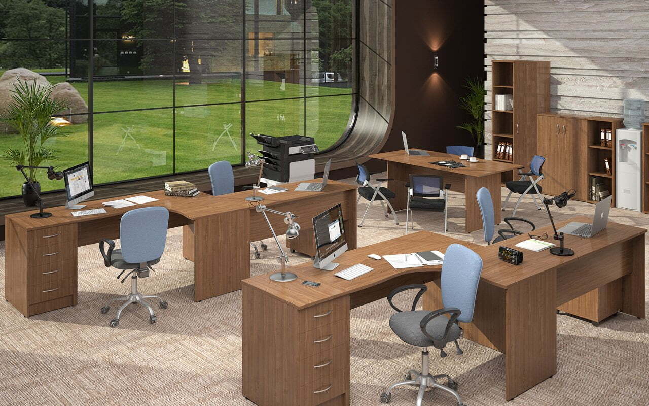 Изготовленная с применением ЛДСП, ХДФ и стекла, мебель формирует максимально комфортные, стильные и практичные рабочие пространства. Богатый выбор модулей и цветовых решений предоставляет возможность создавать оперативные зоны для любого количества специалистов и придавать интерьерам абсолютно уникальные черты.