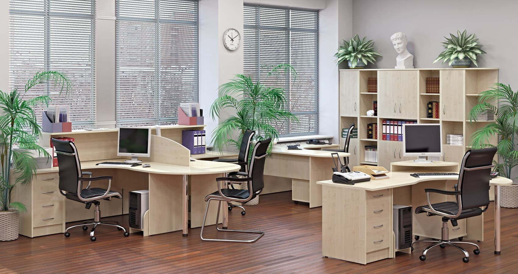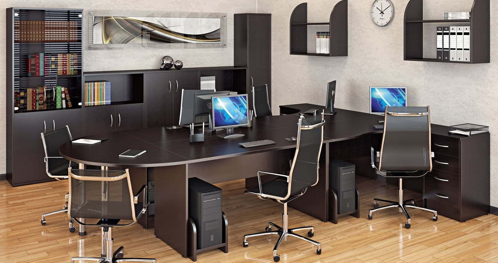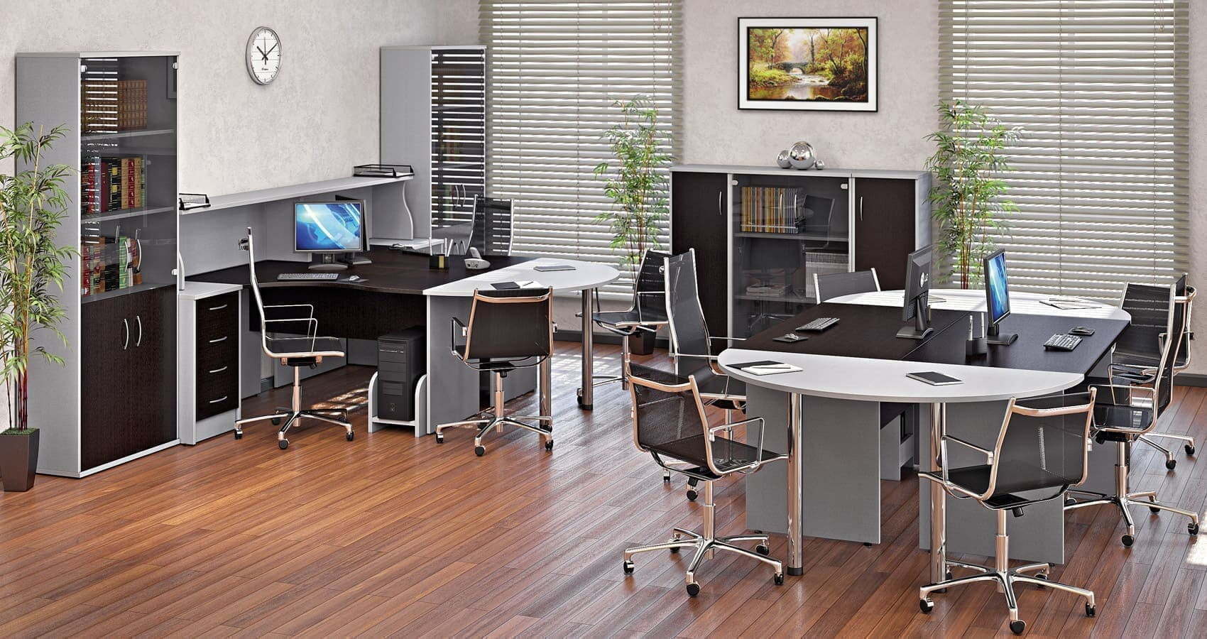 Лаконичный классический дизайн и отличная сочетаемость всех предметов позволит подобрать оптимальный вариант оформления для любого офиса.