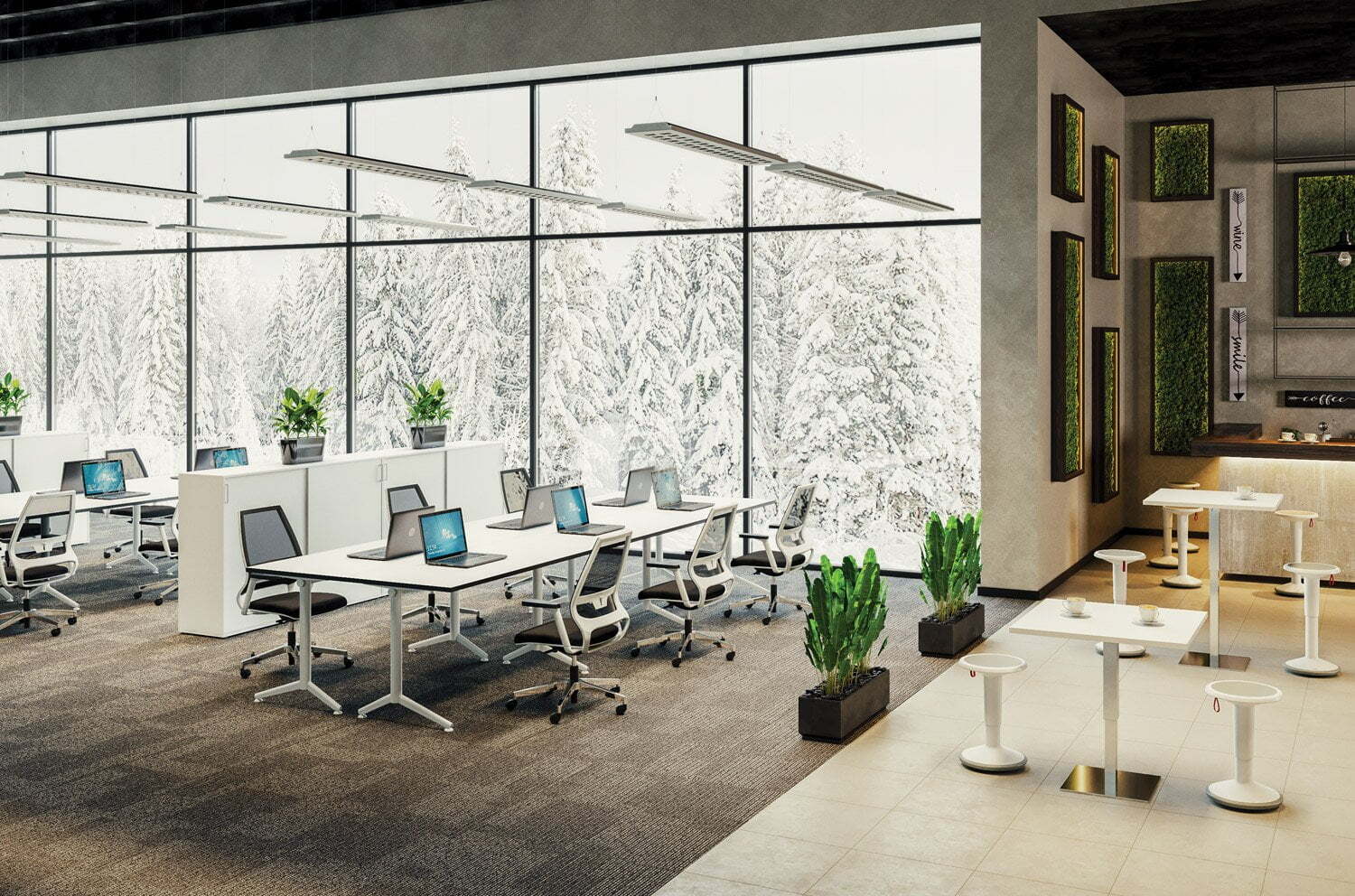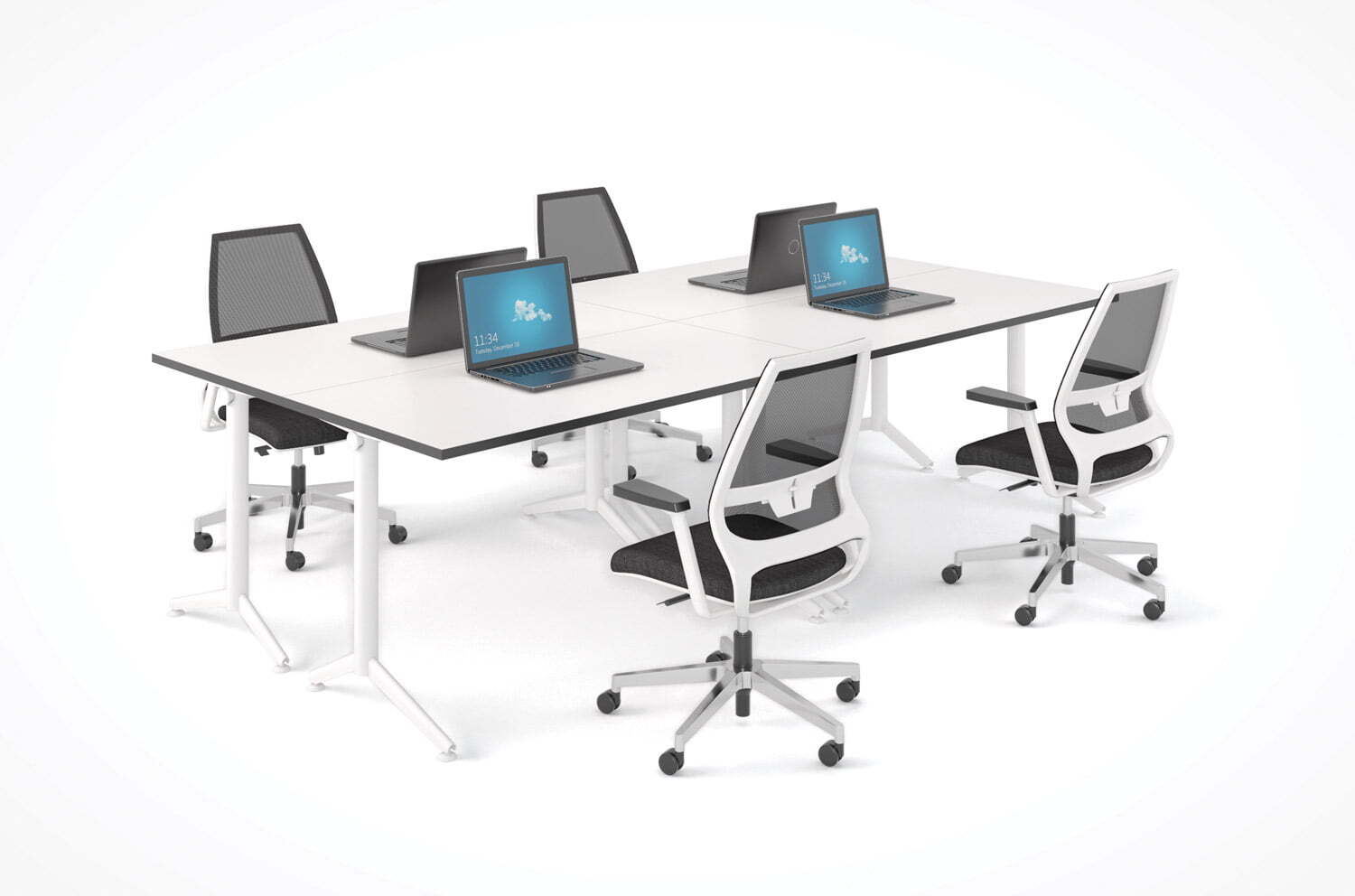 Ваш офис станет светлым и уютным, свободным от излишних деталей. Белый цвет столешниц, подчеркнутый кромкой в цвете графит, не будет отвлекать от рабочего процесса и сделает работу приятной и продуктивной. При желании, на заказ возможно изготовление столешниц в других цветах.