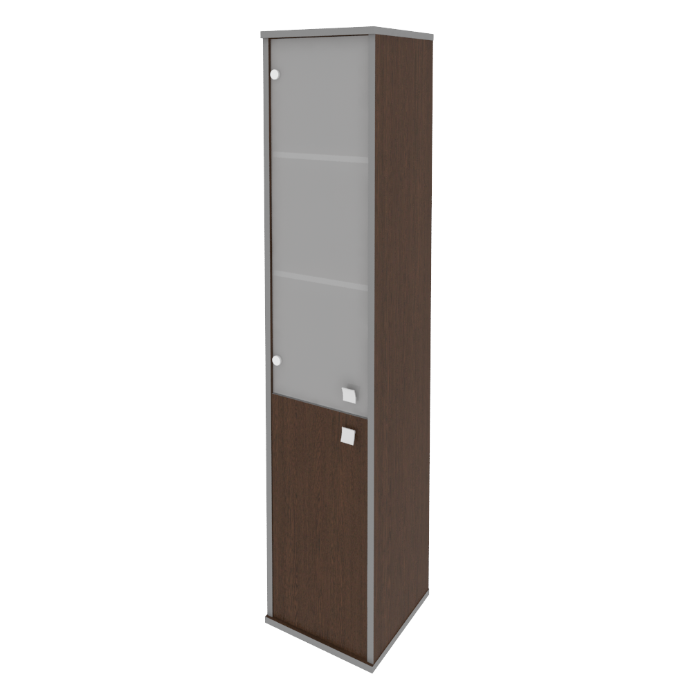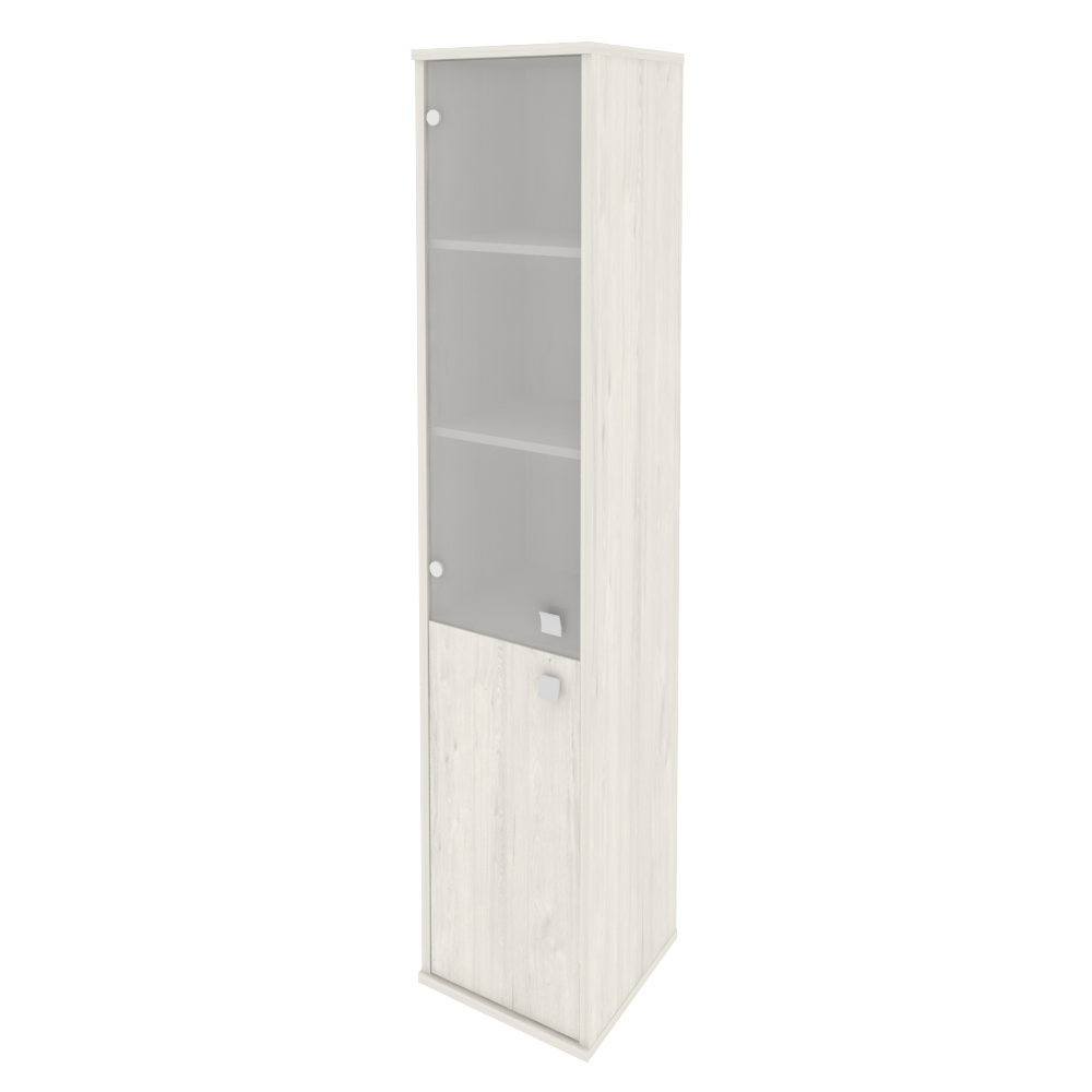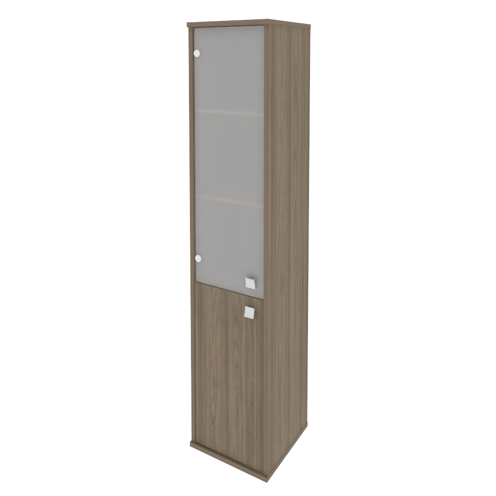 Шкаф высокий узкий, (левый) Style Л.СУ-1.2Пр Размеры: 412x410x1980 Высокая колонка с низкой деревянной дверкой и со стеклянной дверкой сверху. За дверкой две полки и сверху еще три открытые полки. Пометка (левый) означает что дверку легче открывать левой рукой.