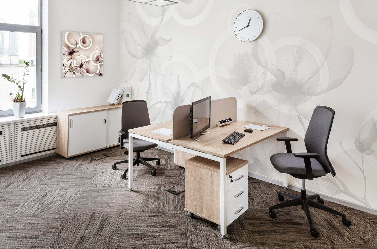 Современная мебельная коллекция Tour Light — прекрасный выбор для оформления рабочих мест сотрудников в теплых оттенках калифорнийского дуба. Стандартные белые опоры придают офису лёгкость и воздушность, а опоры в цветах антрацит или серебристый создают интересные цветовые акценты, придавая помещению современный вид. Коллекция Tour Light отличается высоким качеством исполнения, эргономичностью рабочих мест и широкими возможностями для комбинирования. Это решение, которое сочетает в себе стиль, удобство и функциональность, делая ваш офис более комфортным и привлекательным для сотрудников.