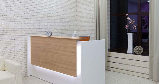 - Забудьте о стандартных решениях! Вы можете создать уникальную стойку ресепшна, которая впишется в атмосферу вашего офиса и подчеркнет его стиль.